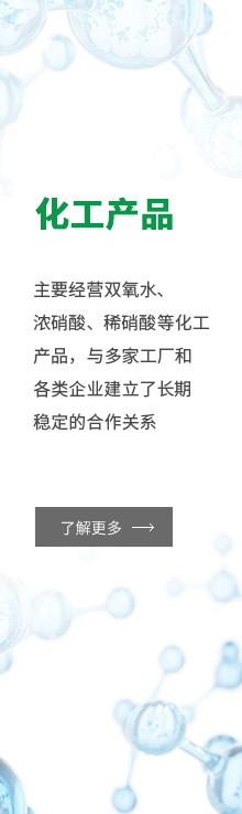 安徽安德諾化工產(chǎn)品銷(xiāo)售有限公司:位于合肥市蜀山區(qū),交通便利,主要經(jīng)營(yíng)雙氧水(27.5%、35%、50%)、濃硝酸(98%)、稀硝酸(40%~68%)等化工產(chǎn)品,與多家工廠和各類(lèi)企業(yè)建立了長(zhǎng)期穩(wěn)定的合作關(guān)系。公司產(chǎn)品齊全,實(shí)力雄厚,重信用、守...